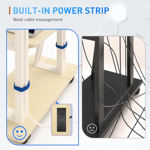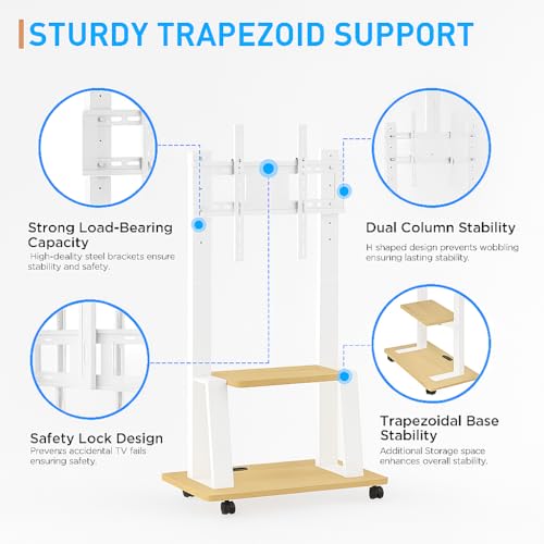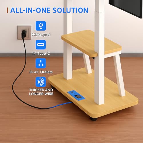 🙌 Includes Power Outlet: Unlike other stands without outlets, our mobile TV stand features a convenient power socket and includes four cable loops to keep your cables organized and tidy. The cart also has two shelves, providing ample storage space for DVDs, remote controls, speakers, and more.